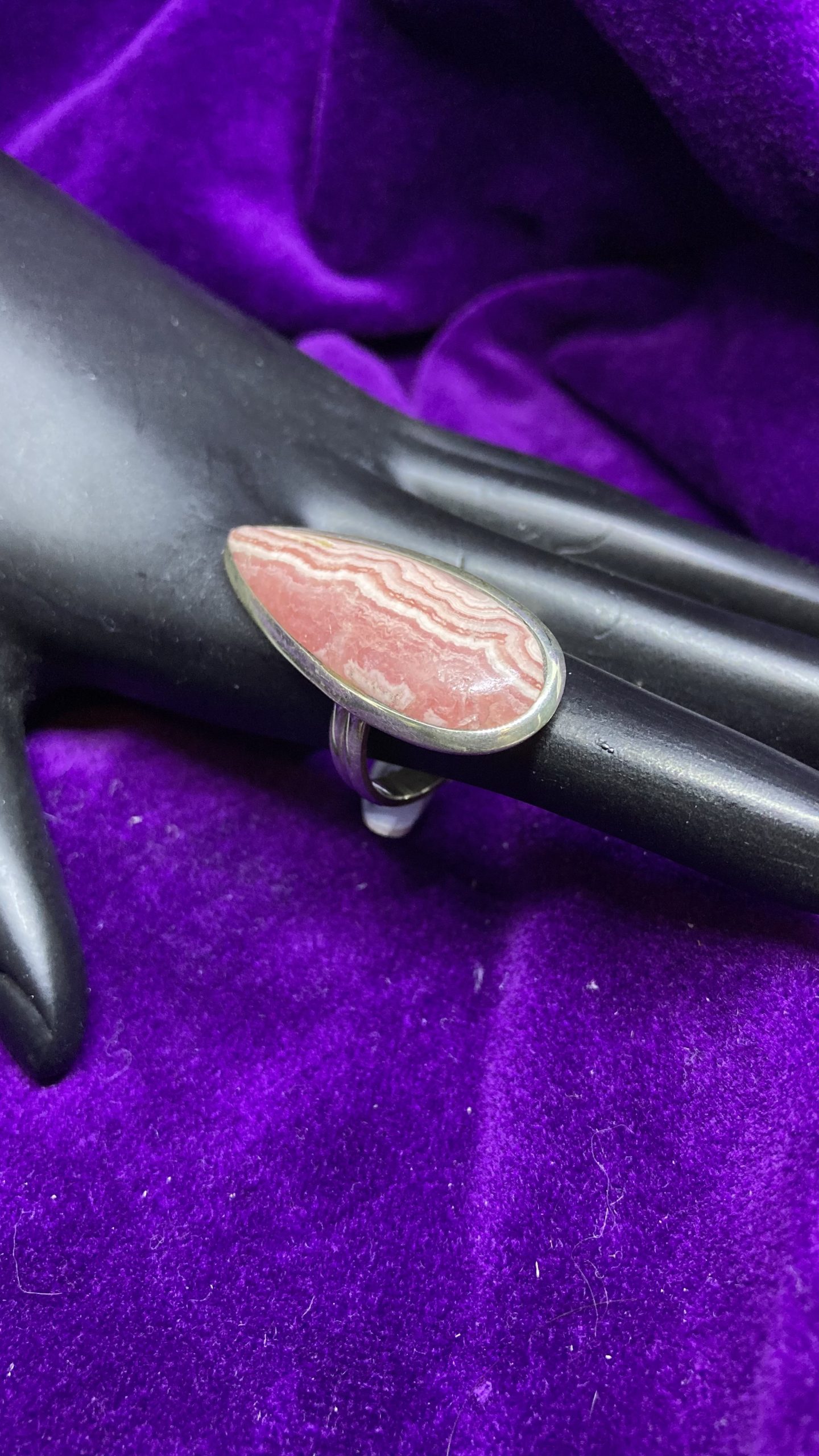 925 Ring with Rhodochrosite Teardrop. Size 7