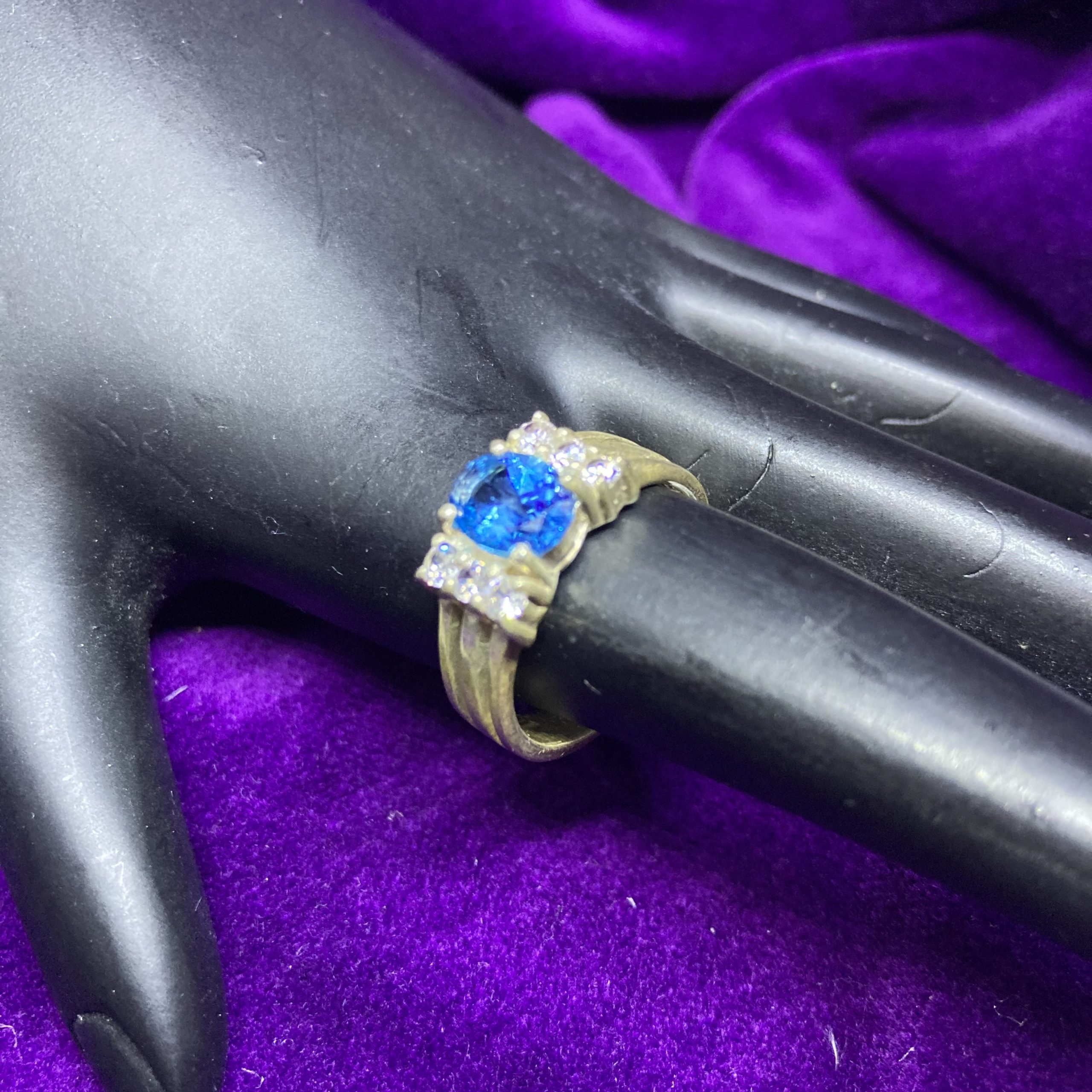 925 Silver Ring with Blue Glass Crystal. Size 7