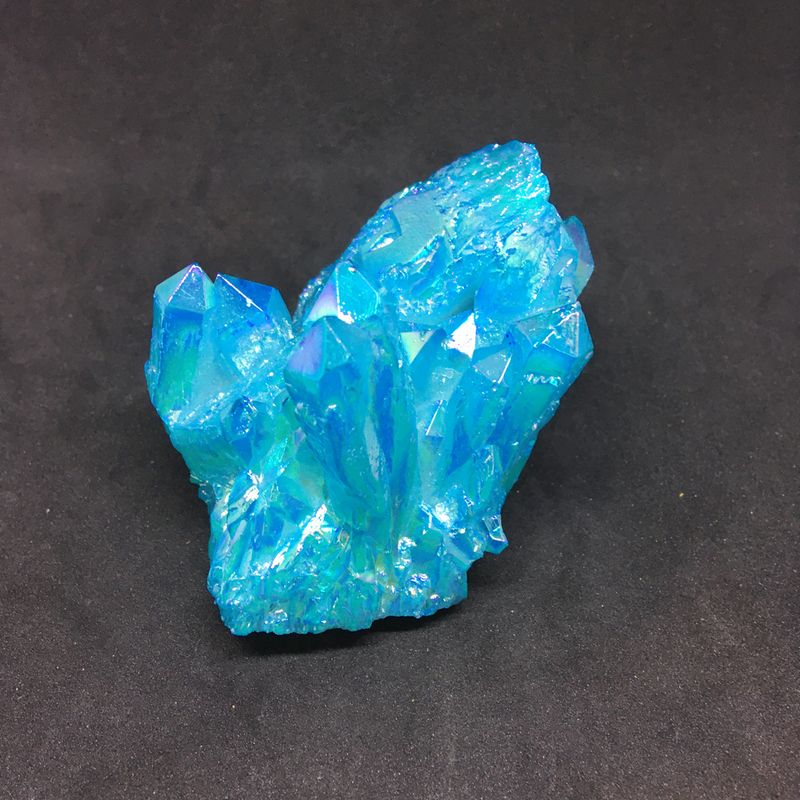 Clear quartz cluster are the result of a specific treatment process where the crystals are heated and fine vaporized gold is bonded to the stone’s surface. These stones have a very high and intense energy that activates all the chakras.