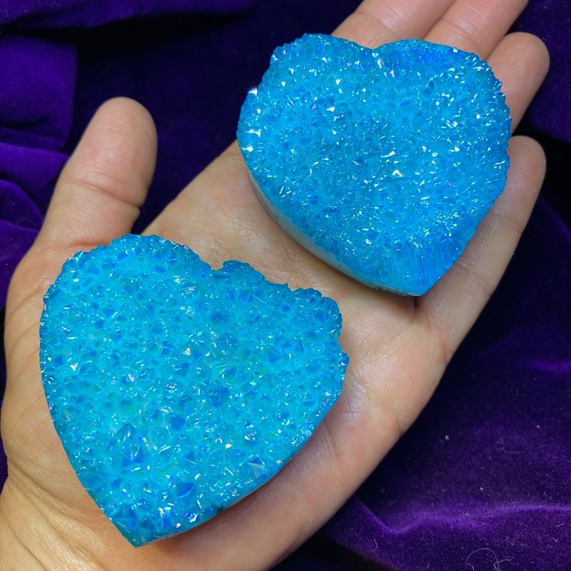 Clear Quartz that has been infused with fine gold mist and other metals to produce the color. Aqua Aura has the healing properties of clear quartz with added enhancement. Approx. 2″ x 2″.