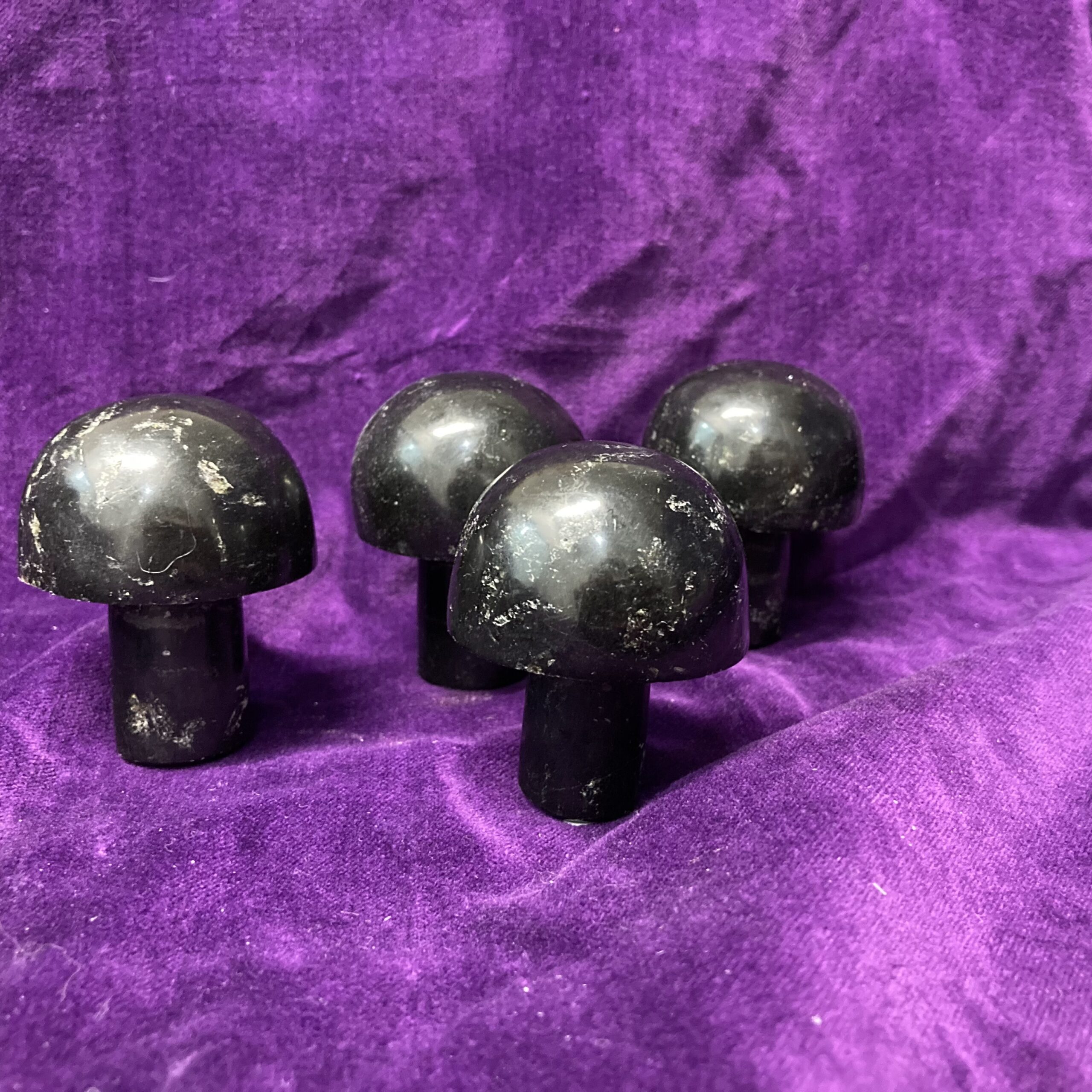 Black Tourmaline is a stone of purification, cleansing the emotional body of negative thoughts, anxieties, anger, or feelings of unworthiness. Carved into mushroom shapes approx. 2″ high x 1.75 x 1.75 and weigh around .5lbs