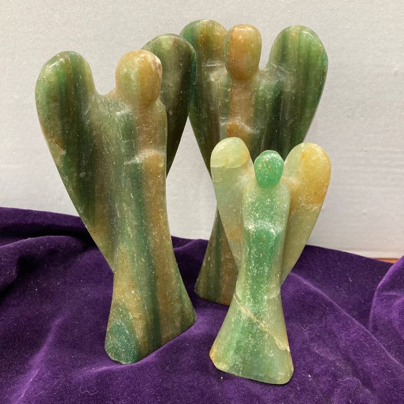 These amazing aventurine angels come from Brazil. Aventurine is the lucky stone.