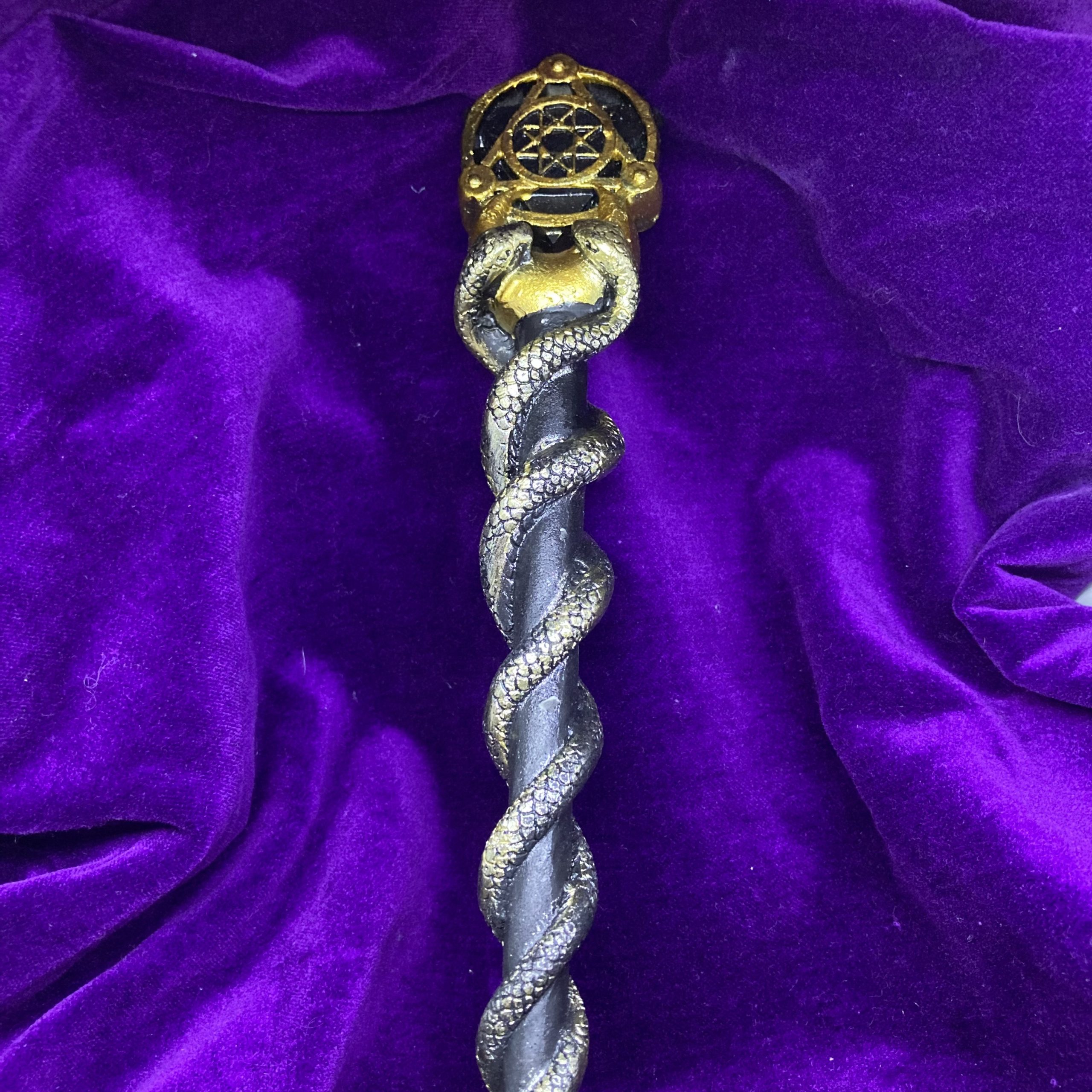 The unique ceramic Alchemy wand is 14″ long and 2″ at its widest.