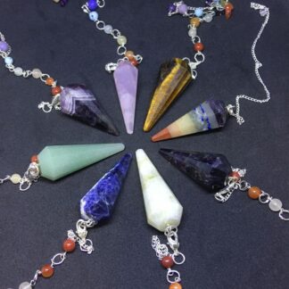 Can be used as a pendant or pendulum. Stainless steel chamber for adding ashes, oils or herbs. Approx. 2 inches long with real gemstones. Choose from Amethyst, Rose Quartz or Clear Quartz. Chain not included.