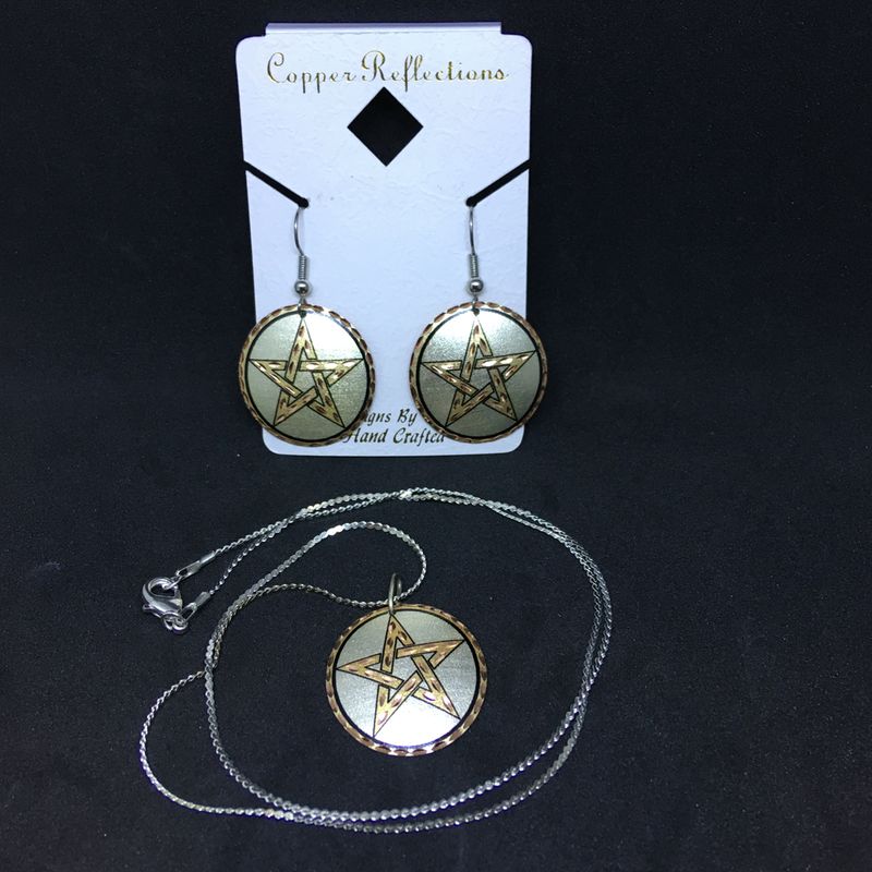 | Copper Reflections Jewelry | Pentacle Pendant, Pentacle Earrings |