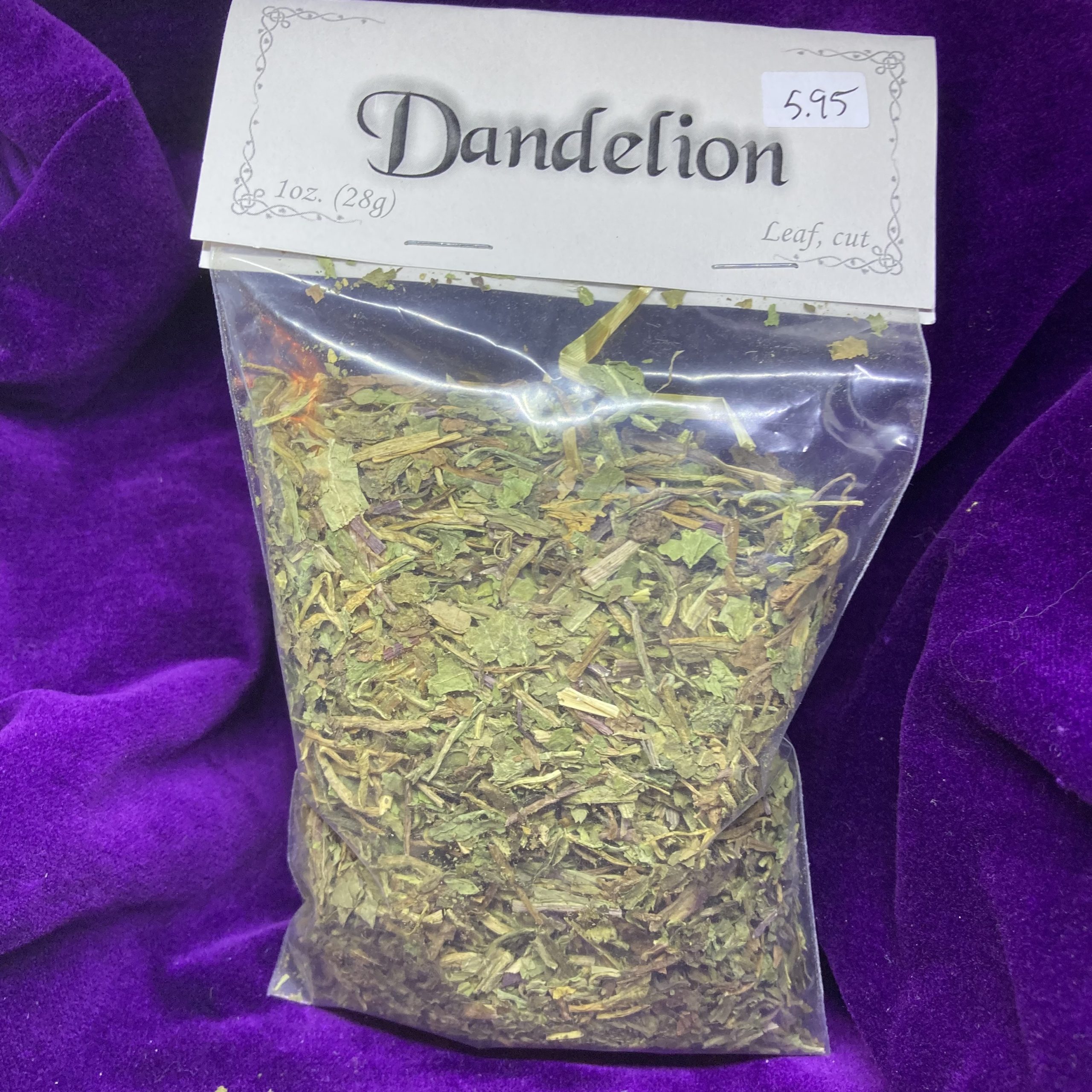 Dandelion leaf is good for summoning spirits and is useful in rituals of purification. It also has associations with masculine energy, the planet Jupiter and air. 1 oz bag