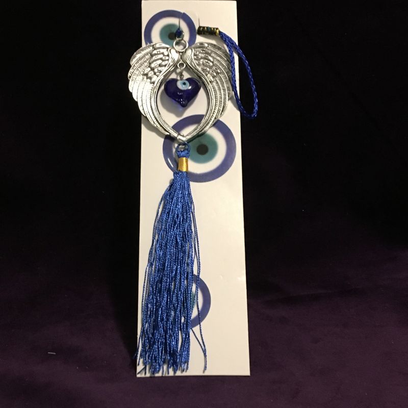 Legend has it that the Evil Eye wards off evil or any ill will sent in your direction. Hang so it can see the front door to keep out negative people or energies. Hangings are approx. 8″ long x 3″ wide