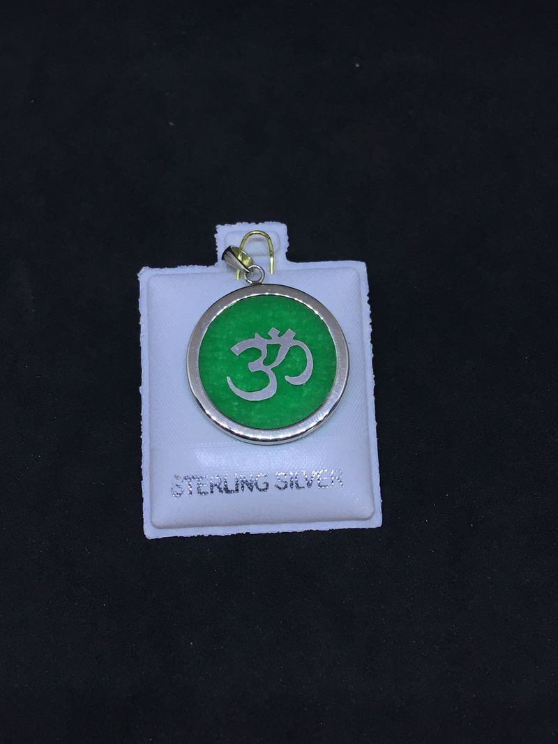 Jade set in sterling silver with Ohm symbol. Approx, 1″ x 1″