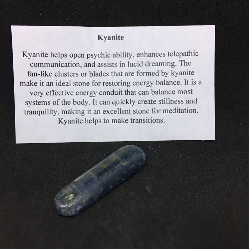 Helps to open psychic ability, aid in telepathy, and assist in lucid dreaming. Kyanite also helps a person to transition from one state of being to another. Stones are approx. 1.25″ long x .25″ x .50″