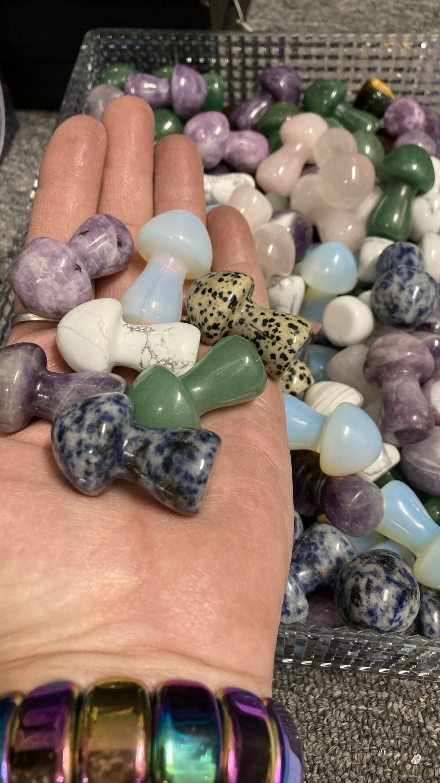 Variety of mushroom shaped gemstones approx. 1.25″ tall. Each stone has it’s own energy.