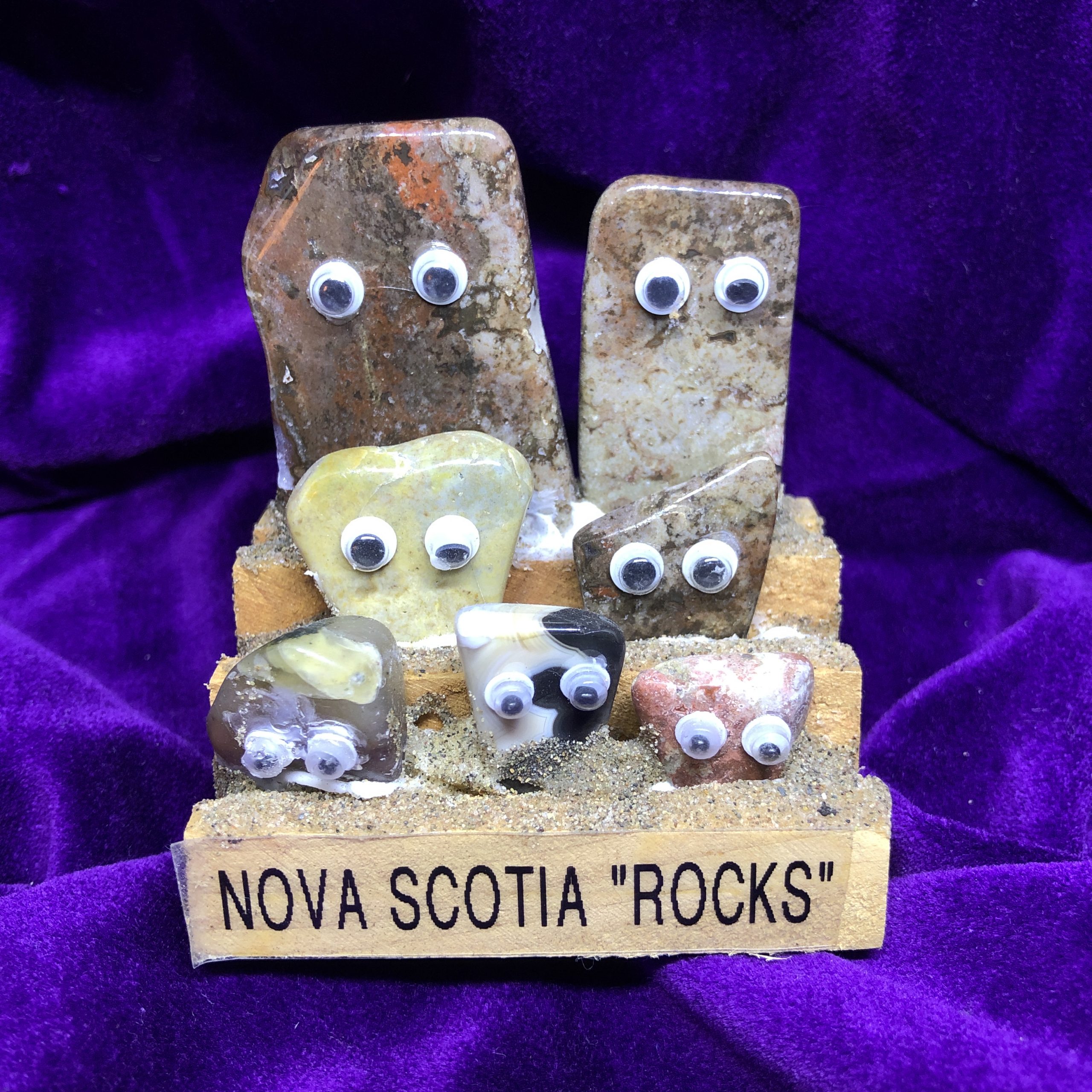 Nova Scotia Agate and Jasper stones. These adorable locally made gifts are approximately 3″x 3″.