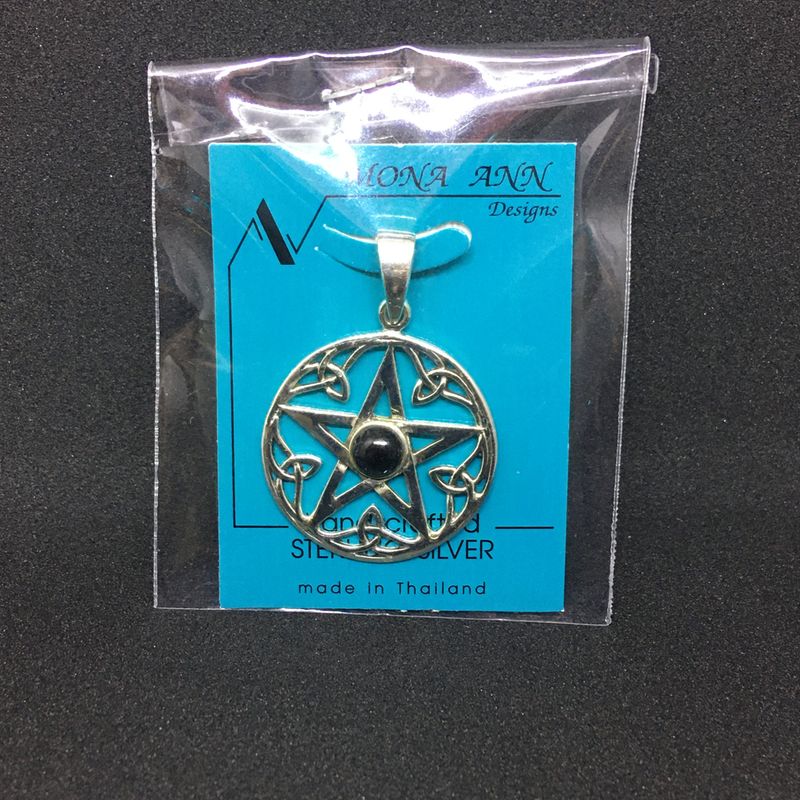 925 Sterling Silver pendant with black obsidian stone. Approx. 1″ round