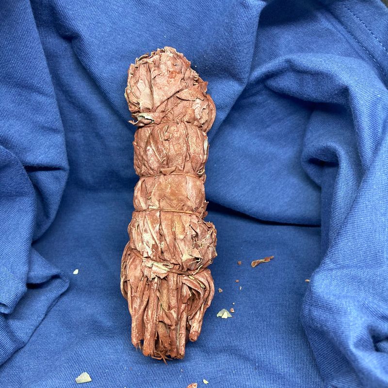 Used for smudging and rituals. These bundles are white sage with added dragons blood incense.