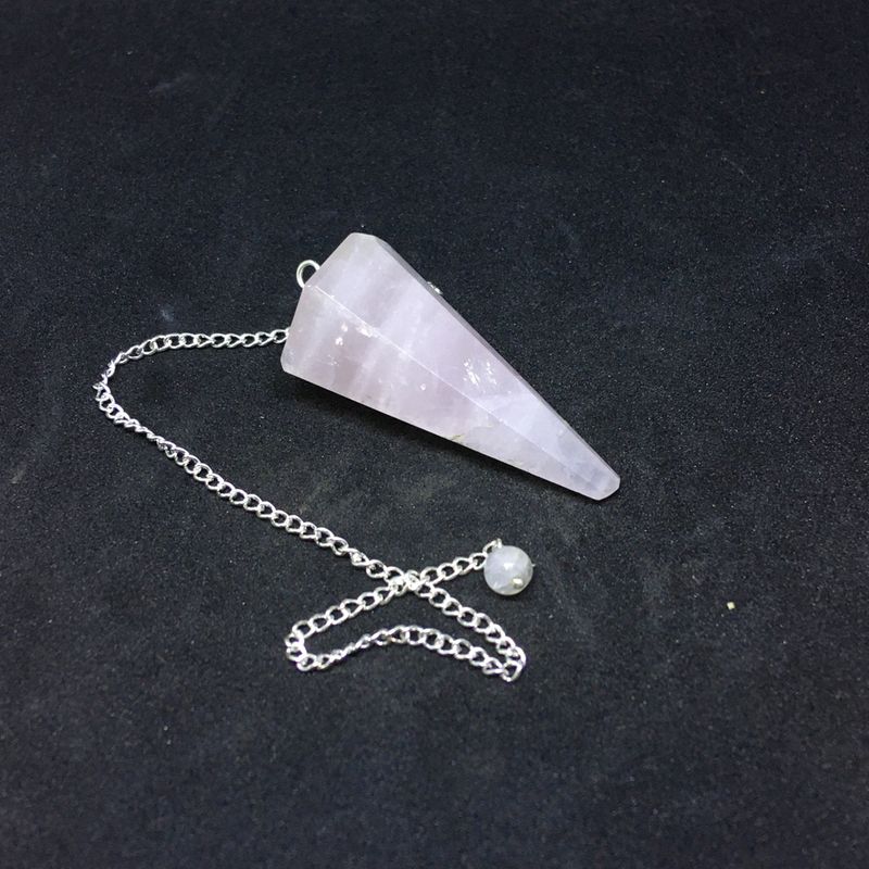 Rose Quartz is a gentle loving stone connected to the heart chakra. Pendulum is approx. 2″ long with 4′ chain.