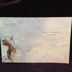 Beautiful zodiac cards with sparkles on front approx. 5″ x 7″ in a decorative envelope.