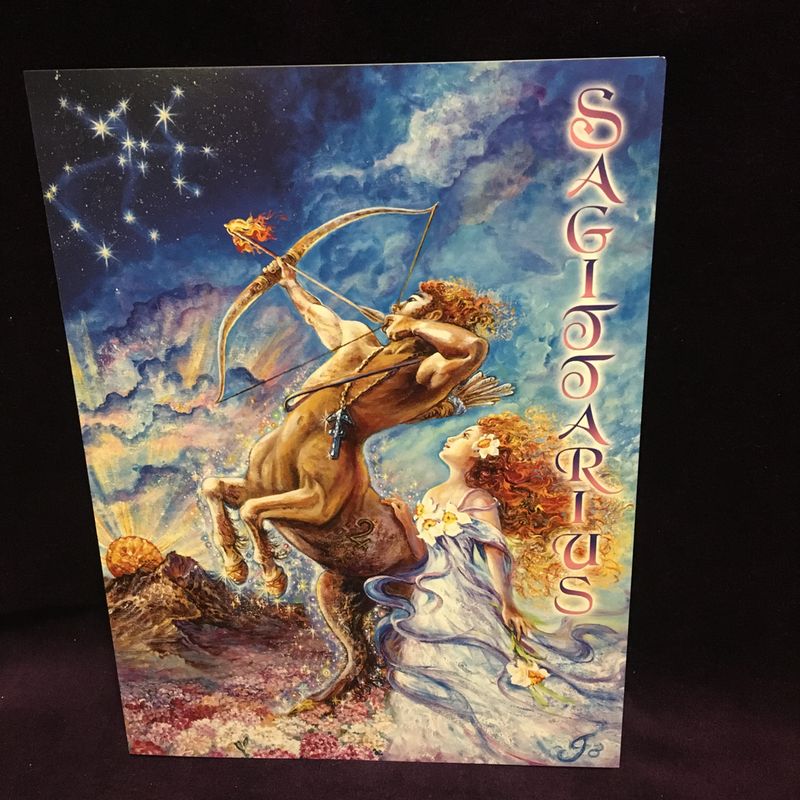 Beautiful zodiac cards with sparkles on front approx. 5″ x 7″ in a decorative envelope.