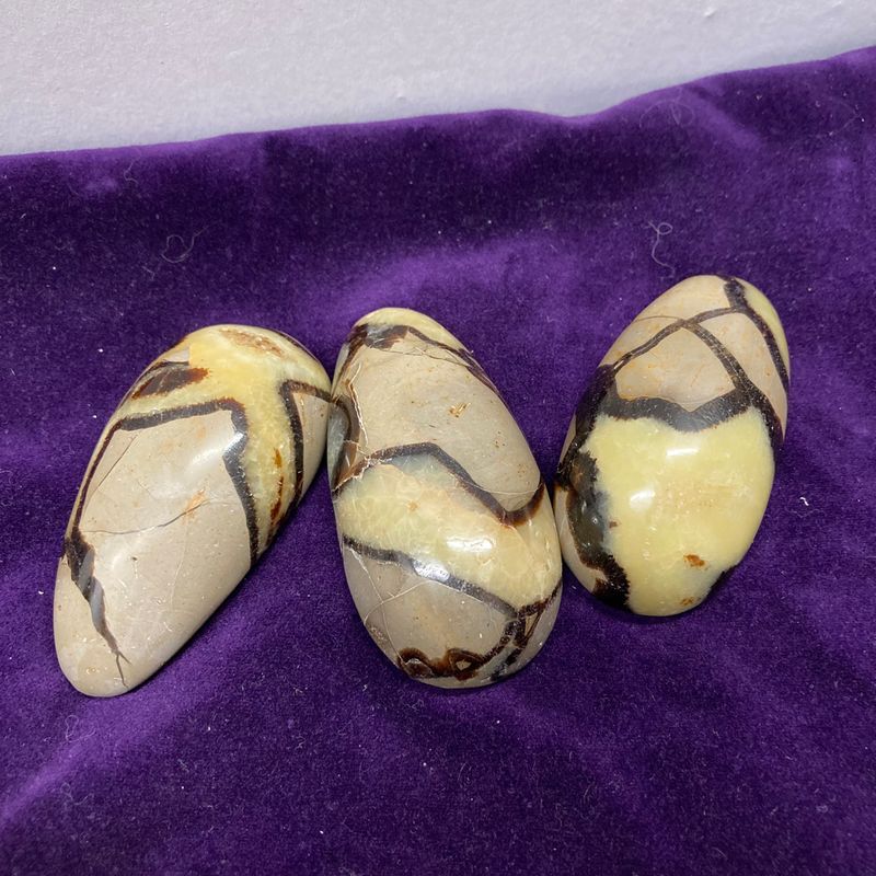 Septarian have a strong Shamanic influence that will strengthen group activities. They also stimulate your patience and aid tolerance for the opinions of other people. Their vibration enhances privacy and they deter unhealthy interest in you. They are also favorable stones for improving your communication ability. Septarian Crystals are also called Dragonstones. They are interesting stones, with no two pieces exactly the same. The various minerals that make up these crystals means that their qualities are quite diverse. Each crystal is made up of a combination of different minerals, which makes for a wide variation between pieces. The metaphysical properties of these stones relate to them having interesting and diverse effects within the life of anyone who decides to use them. All stones are approximately 3″x 1.5″.