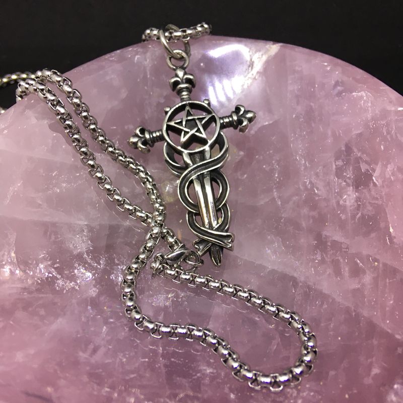 Stainless steel pendant approx. 2&1/2 ” long on 28″ large stainless chain.