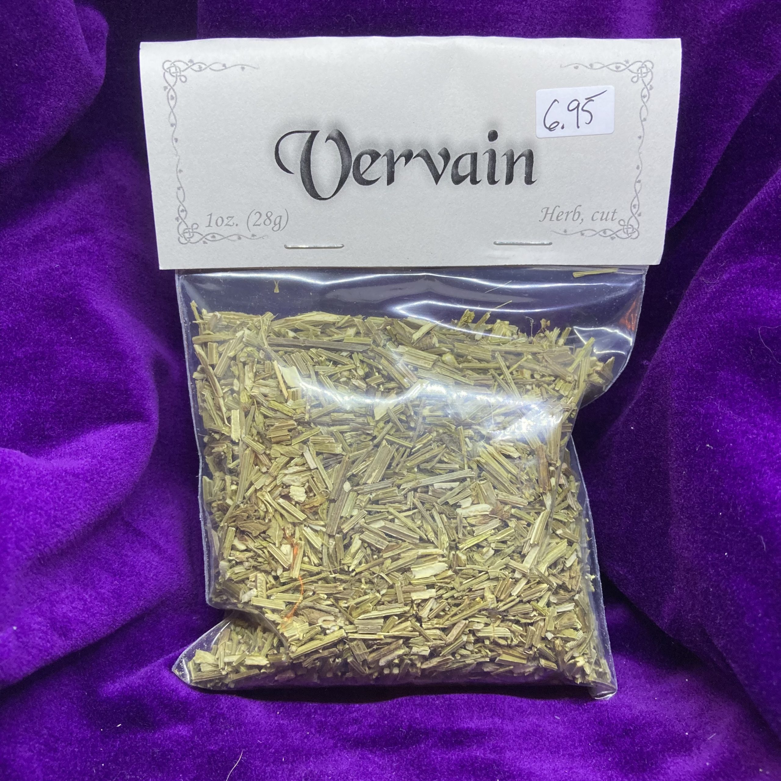 A powerful aid in warding off evil spirits and vampires. Vervain is also a great aid in divination, trances, dream magic and creating love spells. 1 oz bag
